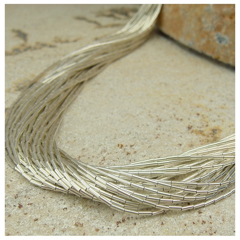 Les bijoux nommés " Liquid Silver » aussi appelés “Liquid Heishi” ou “Silver Heishi”, sont composés d'un ou de plusieurs rangs d'argent sterling brillant.